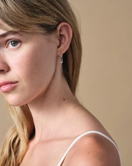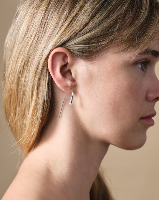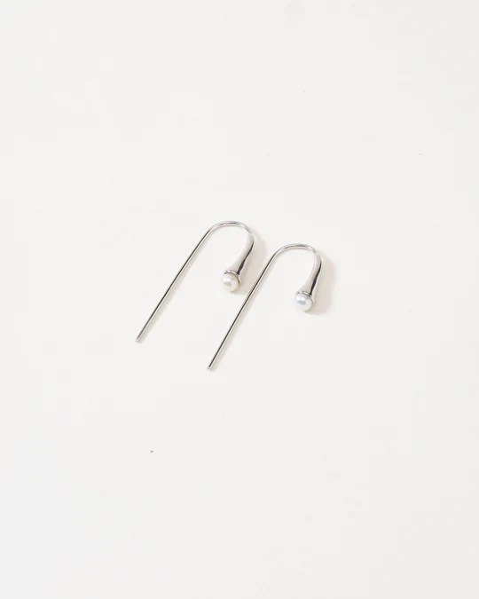 柔らかなカーブを描くシルエットが耳元を通り抜ける、洗練されたパールイヤリング。 艶やかなパールをあしらい、モダンでありながらタイムレスな雰囲気をまとったデザインです。